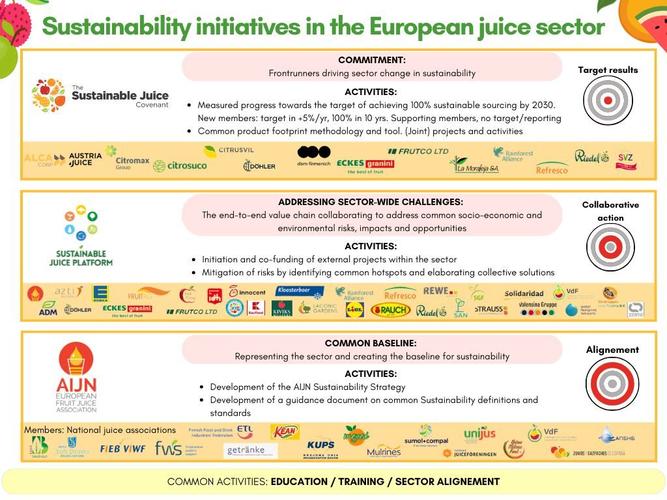 - The Sustainable Juice Covenant (SJC) brings together frontrunners committed to driving measurable change in sustainable sourcing. Members work towards the common ambition of reaching 100% sustainable sourcing by 2030 (with new rules for new members), supported by a shared product footprint methodology. The Covenant also leads common projects at farm-level. Learn more here